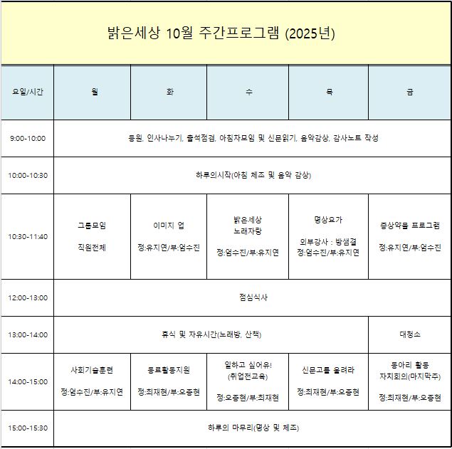 ¾È³çÇϼ¼¿ä. ¹àÀº¼¼»óÀÔ´Ï´Ù. ^^ ¹àÀº¼¼»óÀÇ 2025³â 10¿ù ÇÁ·Î±×·¥À» ¾È³»Çص帳´Ï´Ù. ÀÌ´Þ ¹àÀº¼¼»óÀÇ ÇÁ·Î±×·¥¿¡ ÀÌ¿ëÀÚ ¿©·¯ºÐµéÀÇ ¸¹Àº °ü½É°ú Âü¿© ºÎʵ叮°Ú½À´Ï´Ù.